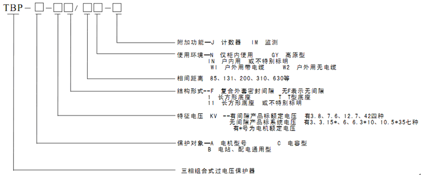 同時該產(chǎn)品也可按JB/T8459-1996《避雷器產(chǎn)品型號編制方法》的編制原則進行擴展定義,具體型號定義如下: