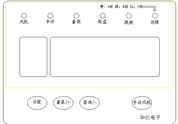 除具有通用型2所有功能以外,還具有RS232計算機串行通信接口,同時輸出三相溫度、風機狀態和傳感器狀態數字信號。