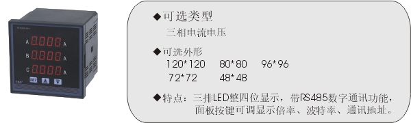 1、通過按鍵,隨意設定CT倍率更改顯示數值、通訊地址、波特率,使用靈活。