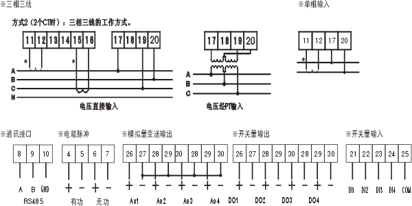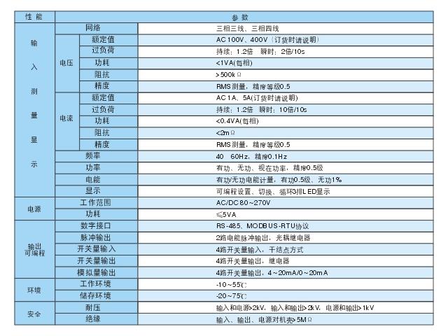 電力網絡:三相三線 通訊:RS-485/MODBUS-RTU